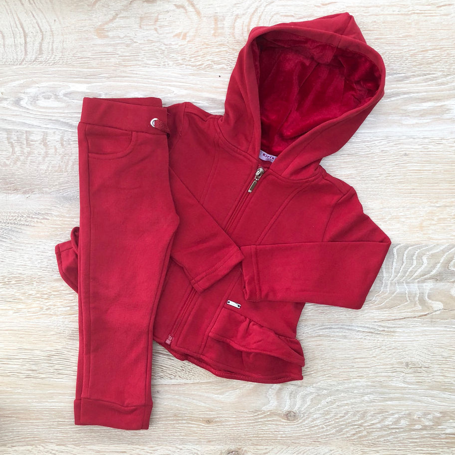 Slim leg Red tracksuit with velour lining in hood and peplum top. Still look super cute on those casual days x
